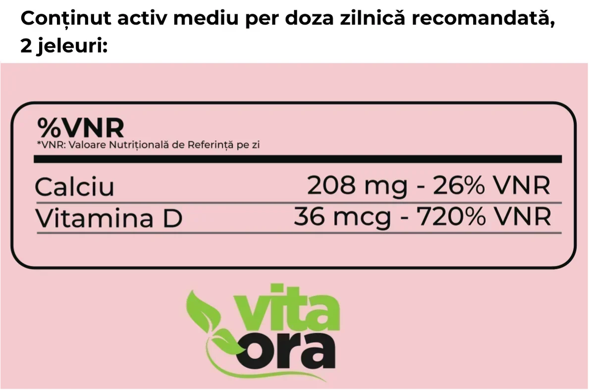 - Moment optim de consum: Pentru absorbție maximă a calciului, se recomandă administrarea jeleurilor în timpul meselor.