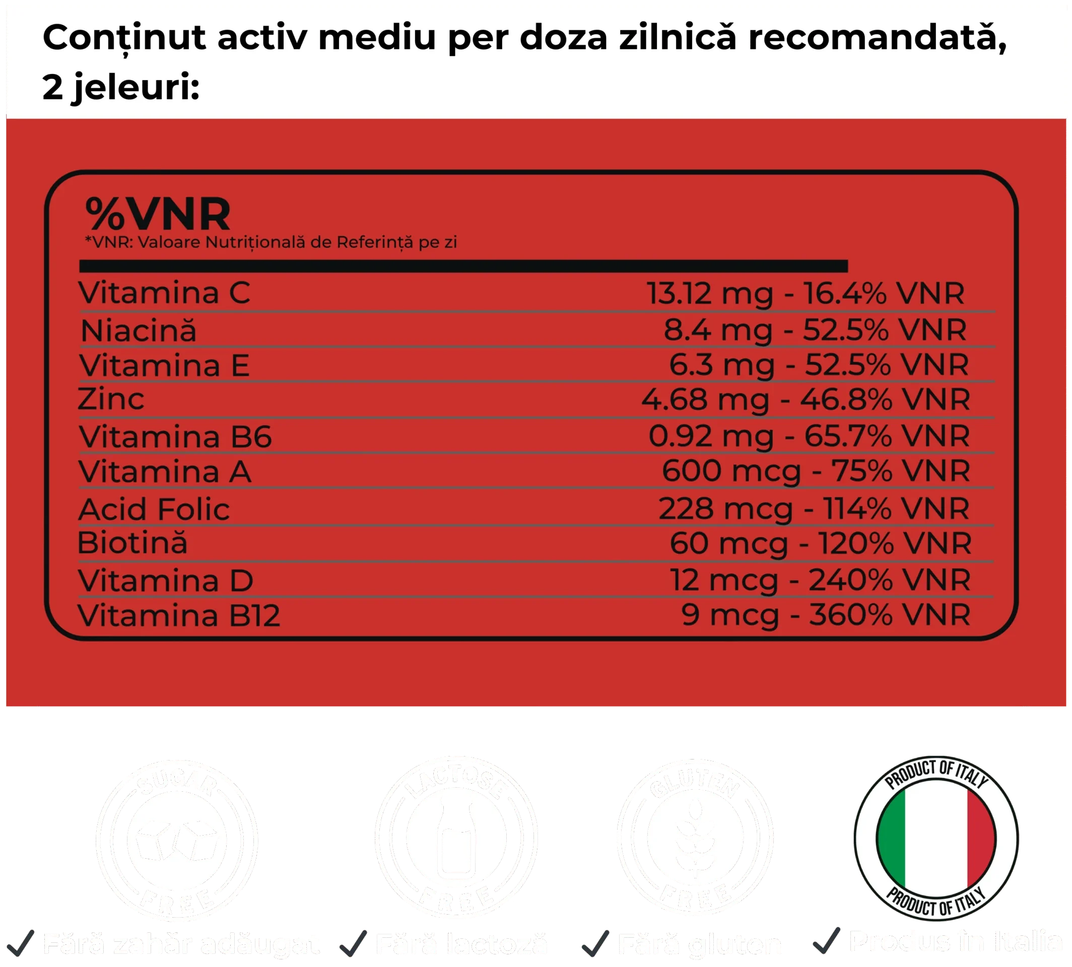 - Doza recomandată: Consumați 2 jeleuri pe zi.